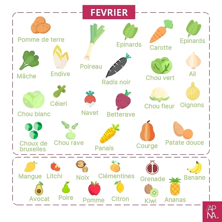 Le mois de février est également la saison de l’oignon, du poireau, de la pomme de terre, du céleri-rave et de la mâche.